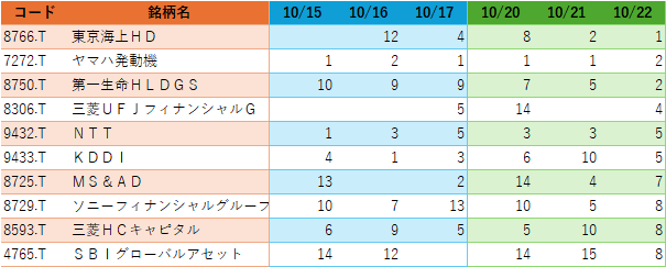 🥈ヤマハ発動機(4.37%),第一生命HLDGS(4.34%):17
