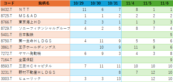 6️⃣王子ホールディングス(4.6%),第一生命HLDGS(4.38%):10