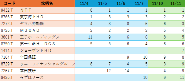 🔟みずほリース(3.82%),三菱HCキャピタル(3.61%),アサヒグループホールディン(3%),日清食品HD(2.59%):4