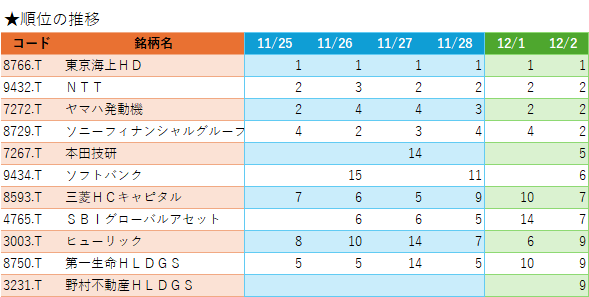 🥈ヤマハ発動機(4.5%),NTT(3.4%),ソニーフィナンシャルグループ(2.39%):15