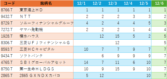 5️⃣積水ハウス(4.22%),三菱UFJフィナンシャルG(2.96%):7