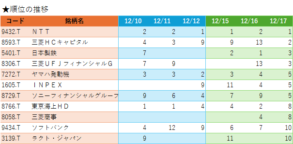 🥉日本製鉄(3.97%),三菱UFJフィナンシャルG(3.01%):11
