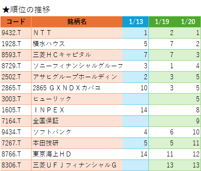 ⑪ジーテクト(4.43%),セブン銀行(3.63%),三菱UFJフィナンシャルG(2.52%):5