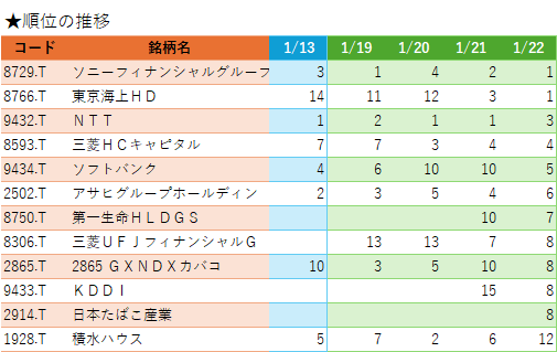 🥇東京海上HD(3.63%),ソニーフィナンシャルグループ(2.21%):15