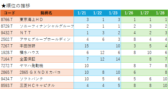 🔟ヒューリック(3.44%),三菱UFJフィナンシャルG(2.69%),伊藤忠(2.13%):6