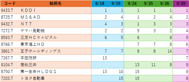 8️⃣第一生命HLDGS(4.15%),商船三井(3.84%),トヨタ自動車(3.31%):7