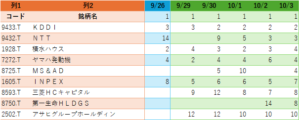 6️⃣第一生命HLDGS(4.33%),アサヒグループホールディン(3.04%):9