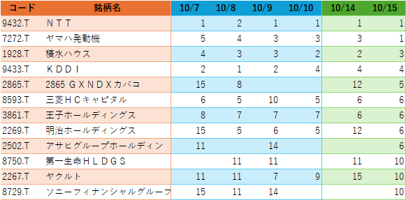 🥇ヤマハ発動機(4.56%),NTT(3.45%):21